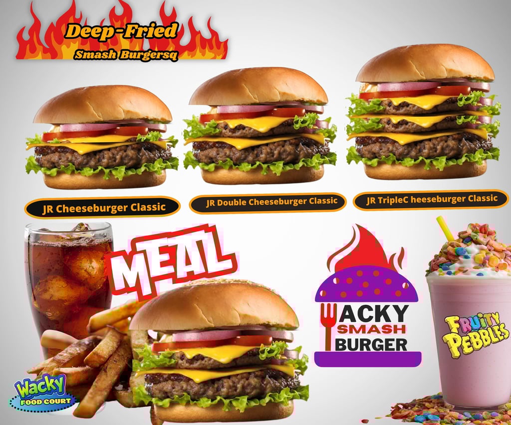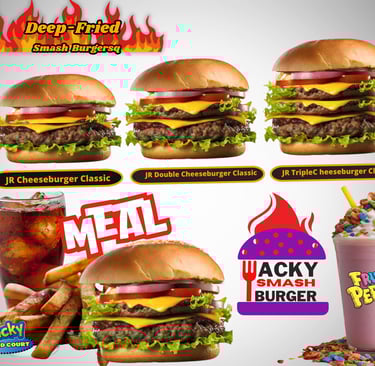 Indulge in a smash burger with extraordinary bursting flavor, but with an innovative twist, we fry our burgers to make them incredibly amazing, ensuring you will return for more. Our build-your-own concept is exceptional, providing you with the opportunity to visit our location and create your burger exactly as desired. This brand is part of the Wacky food court, located within Wacky Nachos, allowing you to order online or visit our partner store, Wacky Nachos.